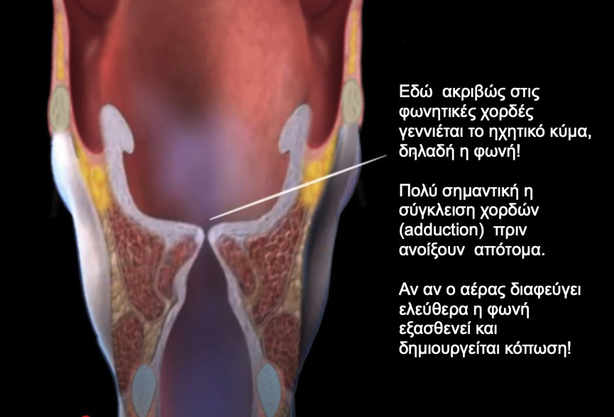Η γέννηση του ηχητικού κύματος εξαρτάται από το πώς ανοιγοκλείνουν οι φωνητικές χορδές (adduction-abduction).